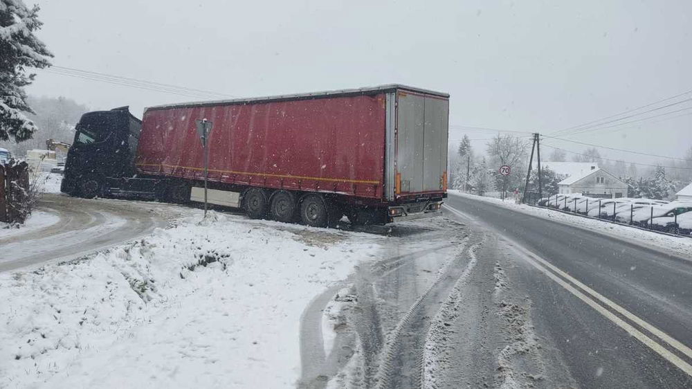 Ciężarówka przewożąca materiały budowlane wypadła z jezdni w Ustjanowej Górnej. Jeden pas jest zablokowany, ruch odbywa się wahadłowo. Policja apeluje o ostrożność. Utrudnienia mogą potrwać kilka godzin.